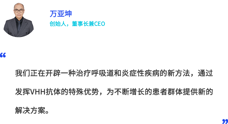万亚坤博士致力于纳米抗体研究19年,拥有极为丰富的纳米抗体项目经验,在纳米抗体领域享有极高的声誉与知名度,曾入选中国科研实验室上海药物所“百人计划”、荣获江苏省六大人才高峰计划、教育部“高层次创造性人才计划”和“新世纪优秀人才”、“2021年度张江国家自主创新示范区杰出创新创业人才”“2024年浦东新区明珠领军人才”等荣誉称号。其创办的企业“mile米乐集团生物”入选2020中国生物医药最具创新力企业50强、2022年中国医药创新种子企业100强,2022年专精特新中小企业。